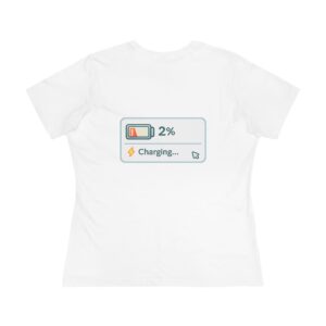 Featuring playful retro battery graphics and the line “Low Battery. Energy Reserved.” on the front, this shirt celebrates slow days, soft boundaries, and intentional recharging. On the back, a tiny 2% charging indicator adds a subtle wink — because sometimes running on reserve is still enough.